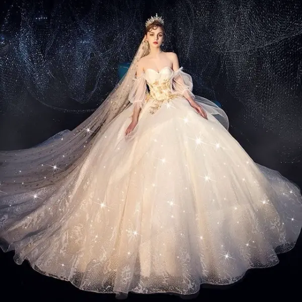 Hôm nay Hồ Điệp đẹp còn hơn cả thiên thần, khoác trên mình bộ đầm cưới bẹt vai tay phồng vô cùng lộng lẫy, mái tóc dài xoăn gợn sóng được búi lên gọn gàng.
